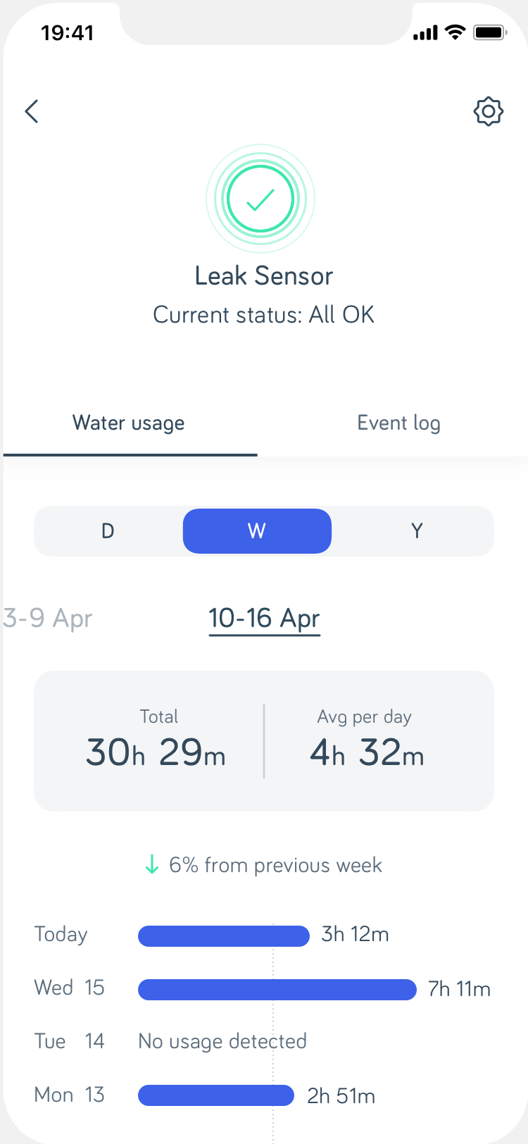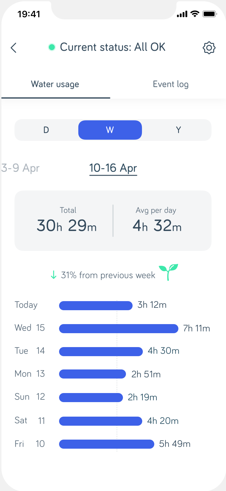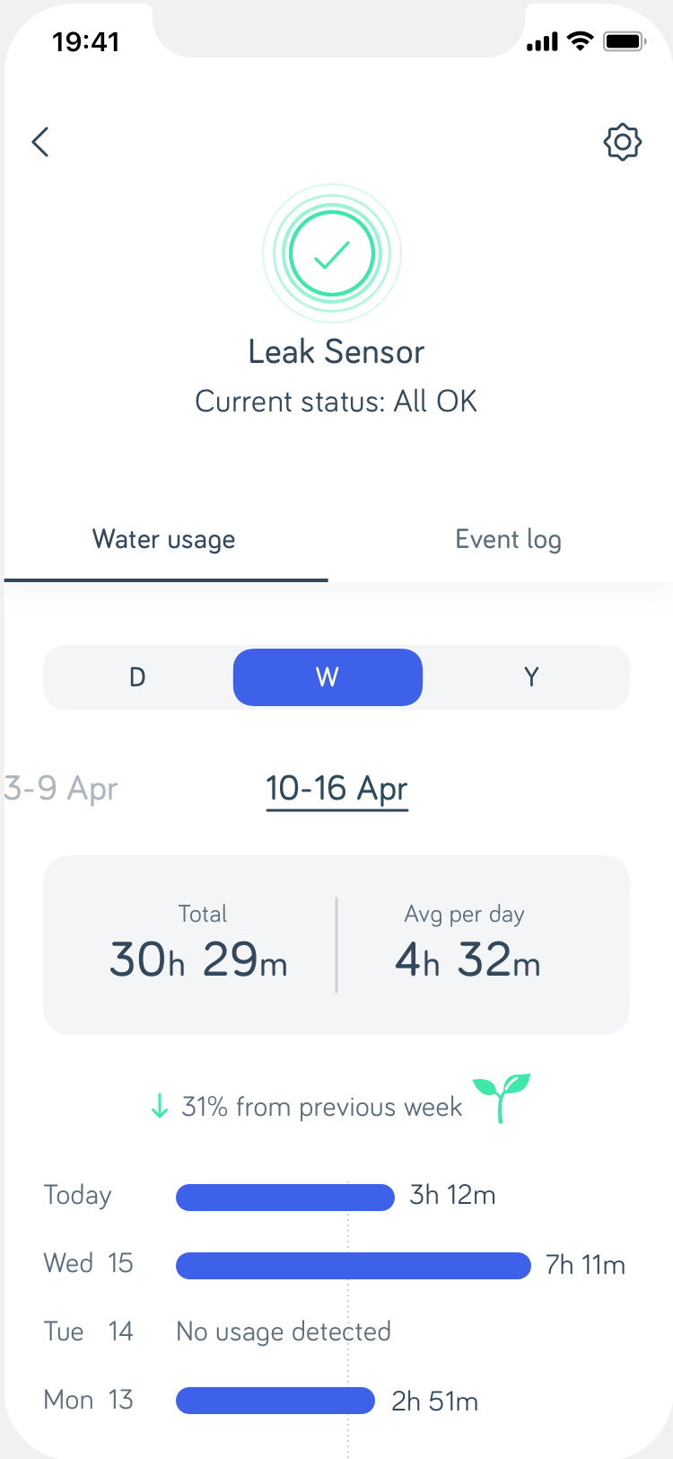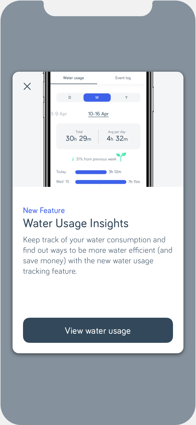 Below are some sample screens of the new water usage feature MVP.