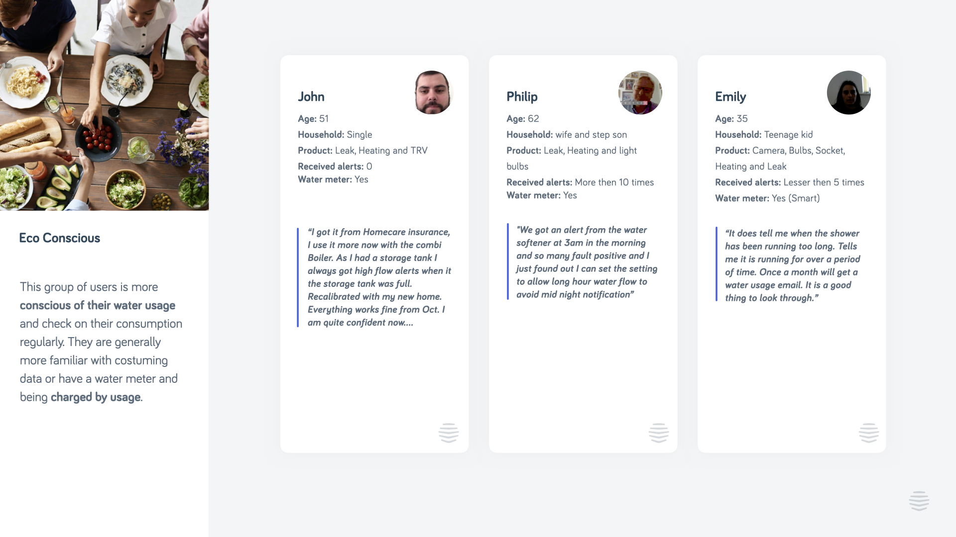 With the aim of increasing customer engagement, I made suggestions to expand the current proposition with a new Water Usage Insights feature, that would allow customers to gain some context around a potential leak by having a historical view of their water usage, but also allow them to adjust and reduce their water usage habits accordingly. Ultimately, this would also have a positive ripple effect on customers' carbon footprints and help shift the negative perception around the product.
