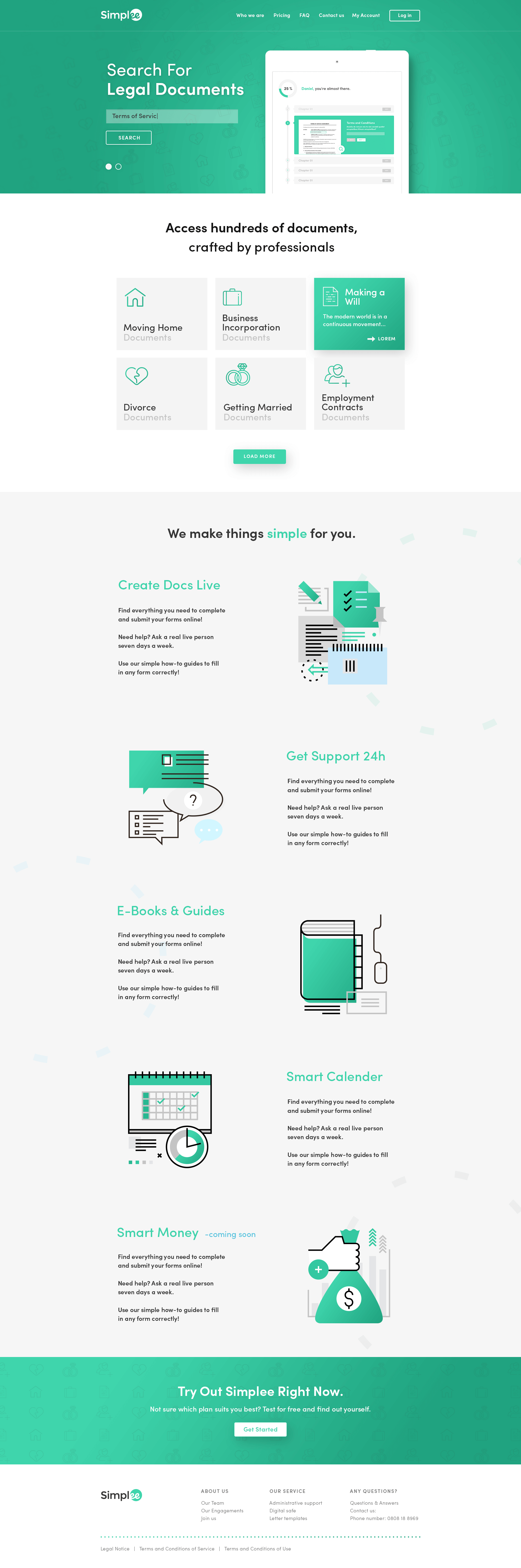 This was a rare and exciting opportunity to design an in-house product from scratch at Iron Group. The main challenge behind Simplee was to help people save valuable time and money (and quite a lot of it!) in finding and creating legal documents online, compared to involving solicitors or legal firms.